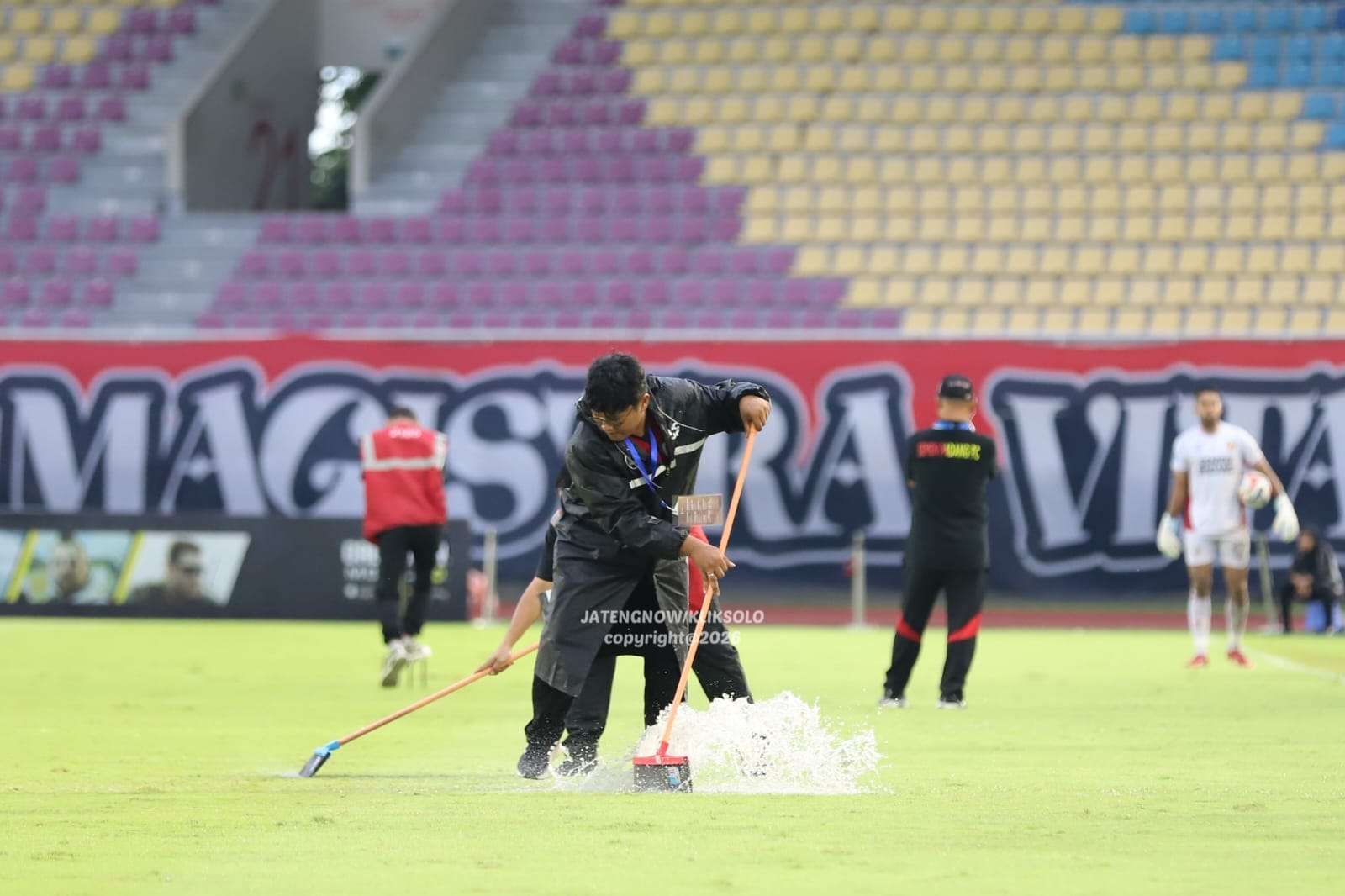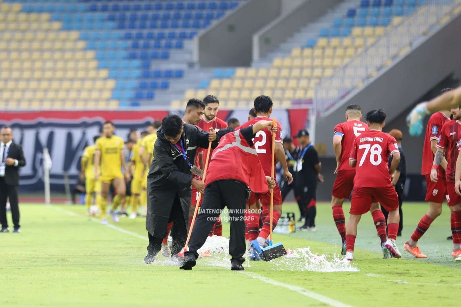 SOLO, KLIKSOLONEWS.COM – Kondisi lapangan Stadion Manahan menjadi sorotan saat laga antara Persis Solo menghadapi Semen Padang FC dalam lanjutan Super League 2025/2026, Minggu (12/4/2026).